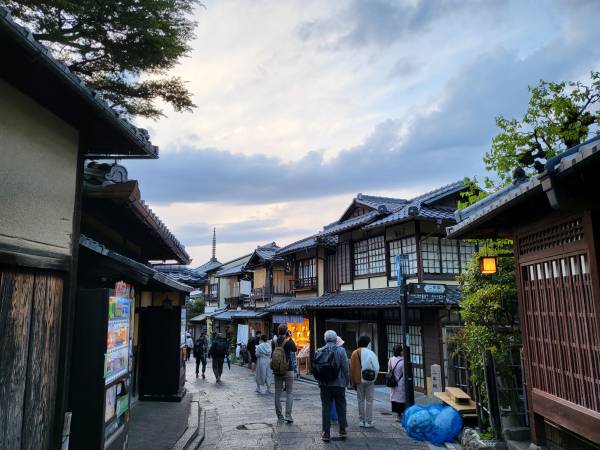 니넨자카를 지나 청수사로 향하는 오르막길이 바로 산넨자카 입니다. 산넨자카는 니넨자카와 비슷한 모습의 오르막길입니다. 가파른 오르막길에 사람들이 많이 있는 곳이기 때문에 넘어지지 않도록 조심해야 합니다. 산넨자카를 지나 청수사에 도착해서 반대편을 바라보면 고즈넉한 교토 시내의 모습이 한눈에 들어옵니다.